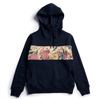 with the floral print panel. It is valued for its big cozy hood and high hooded